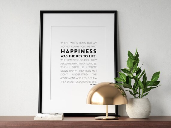John Lennon Quote Happiness Is The Key To Life Digital Download