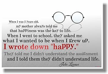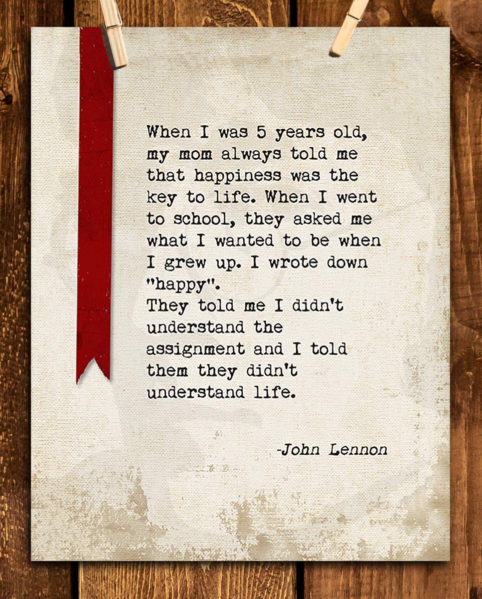 Sjc John Lennon Quote When I Was 5 Years Old Understand Life Wall Poster Print Classroom Office Business Dorm Home Office 18 X 12 In Sjc62