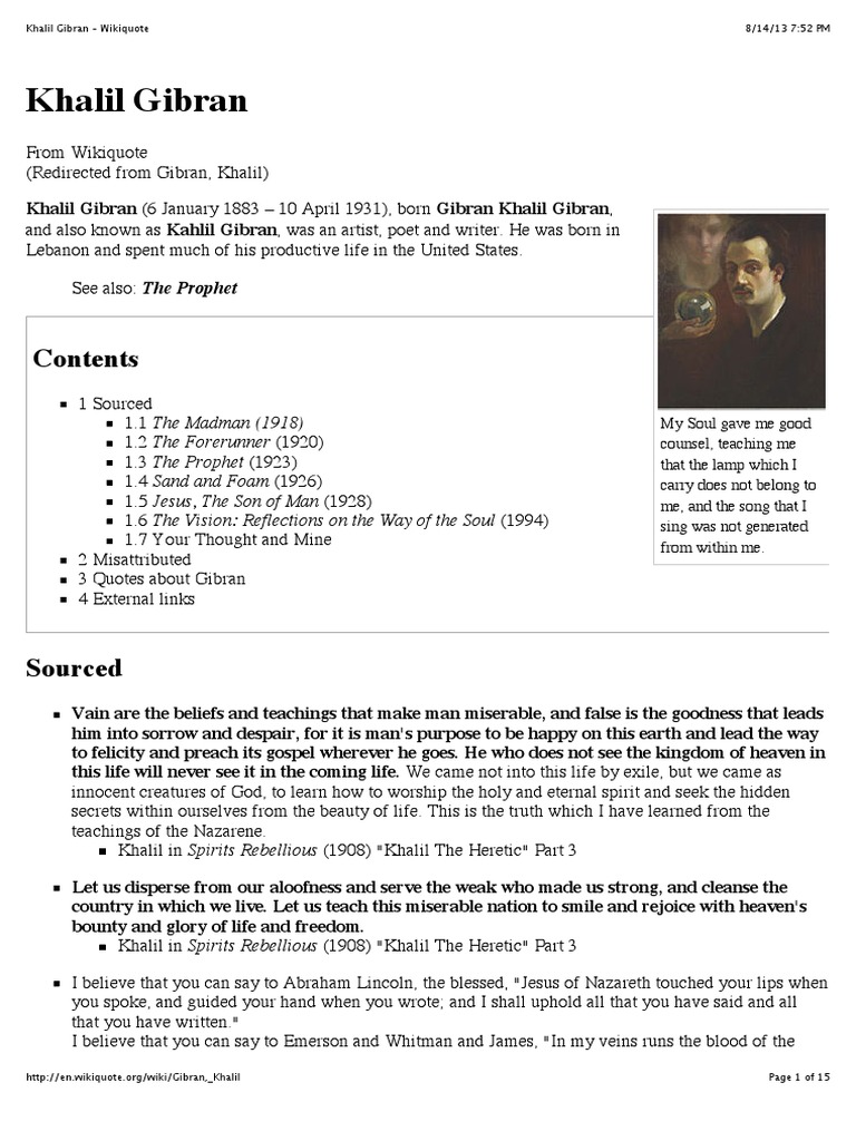 2284 quotes from kahlil gibran. The poem consists of 10 stanzas. He was also well known as an artist and made over seven hundred portraits.