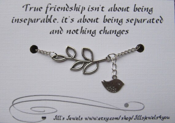 Best Friend Long Distance Friendship Charm Bracelet With Leaf And Bird Friendship Quote Card Friendship Bracelet Bff Bracelet