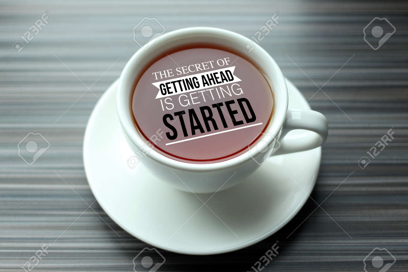 Inspirational Success Quotes On Top View Of Coffee Cup On Wooden